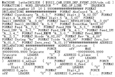 (9)保存退出,在保存文件夾目錄下生成FANUC_0i _D_post.cdl,F(xiàn)ANUC_ 0i _D.pui,F(xiàn)ANUC_0i _D.tcl3個文件源代碼,圖9所示為生成的部分后置處理源代碼。